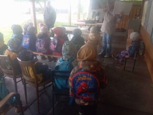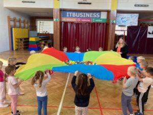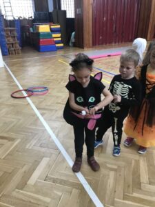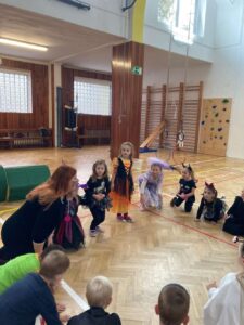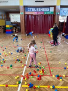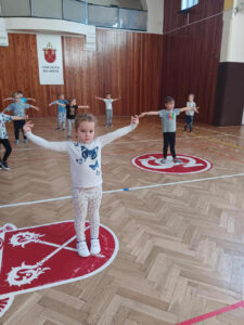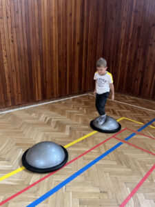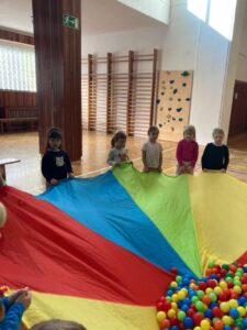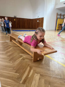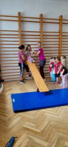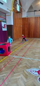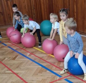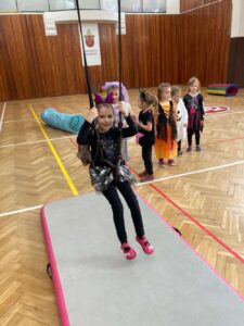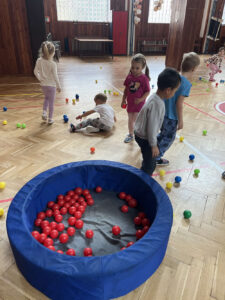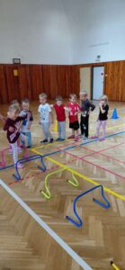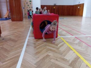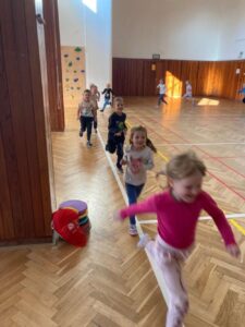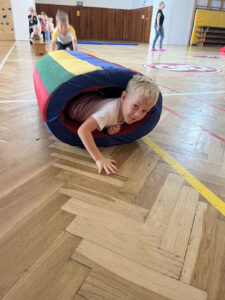 Každá třída z naší mateřské školy chodí do sokolovny cvičit 1 hodinu v týdnu.