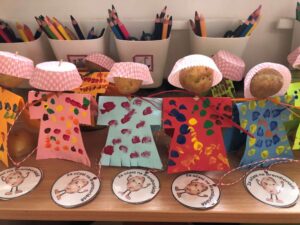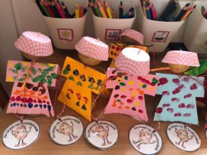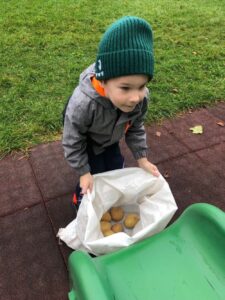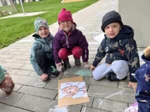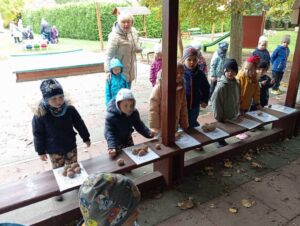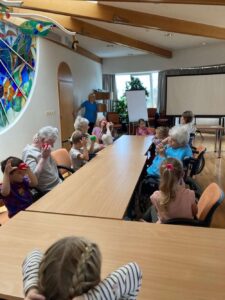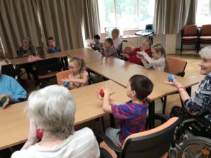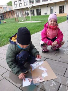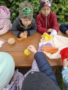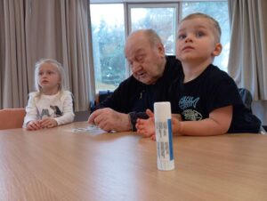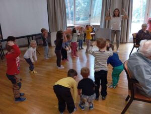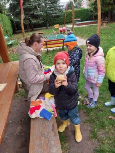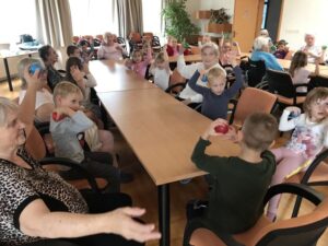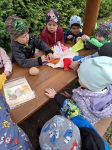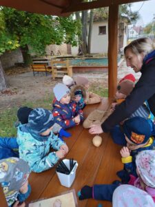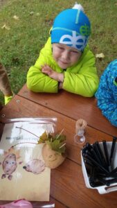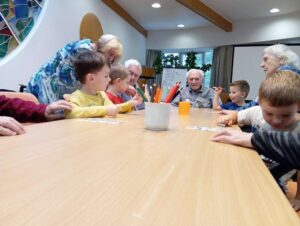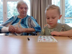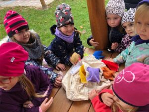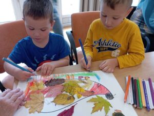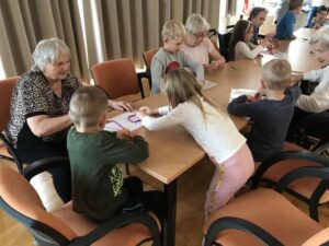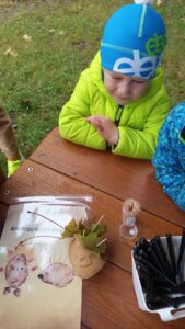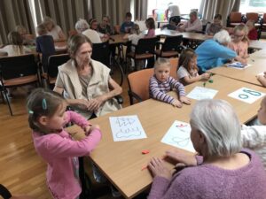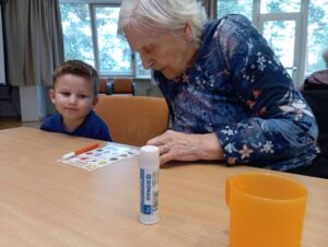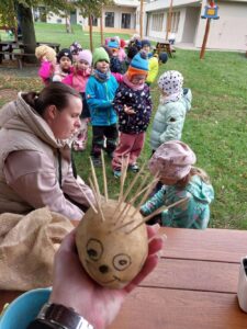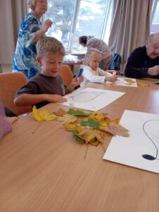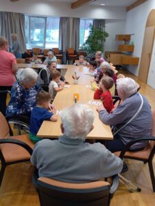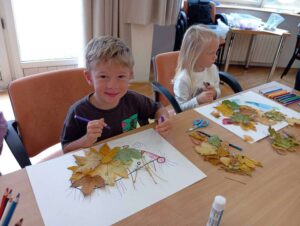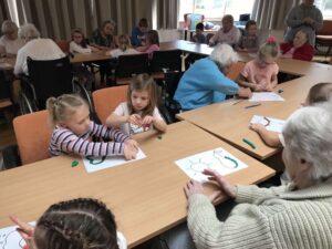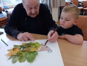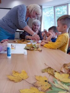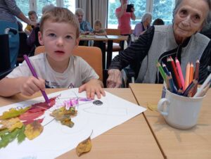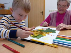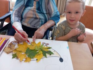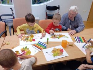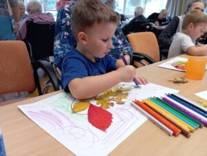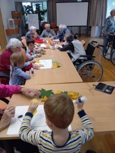 Druhé setkání, tentokrát dětí ze třídy “Jablíčko” se seniory v pečovatelském domě “Modrý kámen” , se neslo v duchu společného podzimního tvoření.