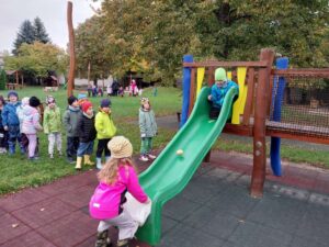 Podzimní výlety byly společně s dětmi naplánovány a také uskutečněny. Všem třídám přálo počasí a výlety se vydařily. Třídy “Motýlek” a “Jablíčko” se vydaly za zvířátky na Horní Rokytou na ranč Hafling . Třída “Včelička” a “Sluníčko” vyjely na hrad Kost a do údolí Plakánek. Poslední třídy “Beruška” a “Hruštička” si vyzkoušely labyrinty na zámku Loučeň a prohlédly si výstavu historických automobilů.