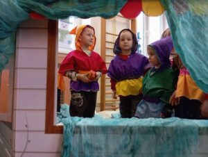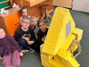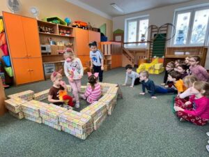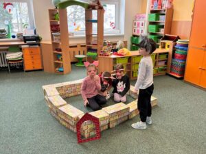 Třída Včelička – z klubíčka na děti vyskočila pohádka : “Bouda, budka”